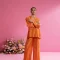 ANDEAN – Vibrant Peach Ensemble with Flowing Wide-Leg Trousers