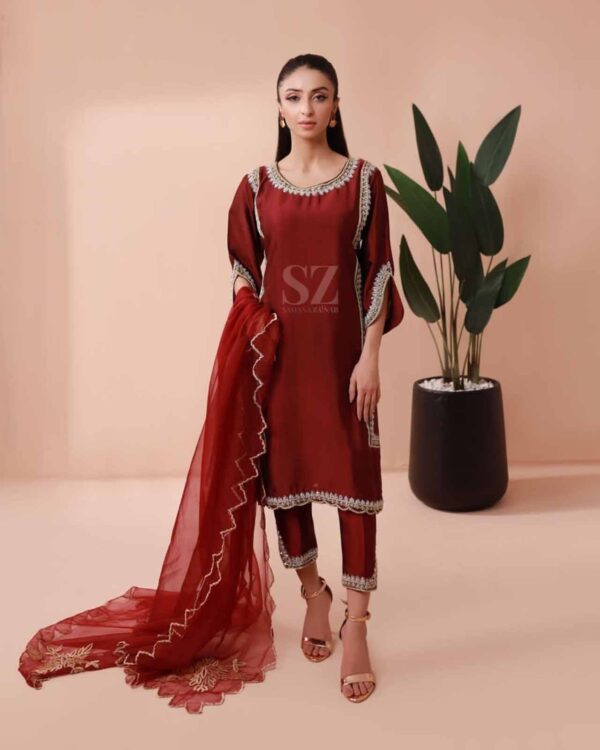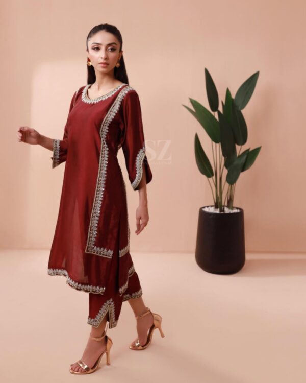 By the day or night, this sheesha silk with glittery hand work will be your most trusted companion this season.